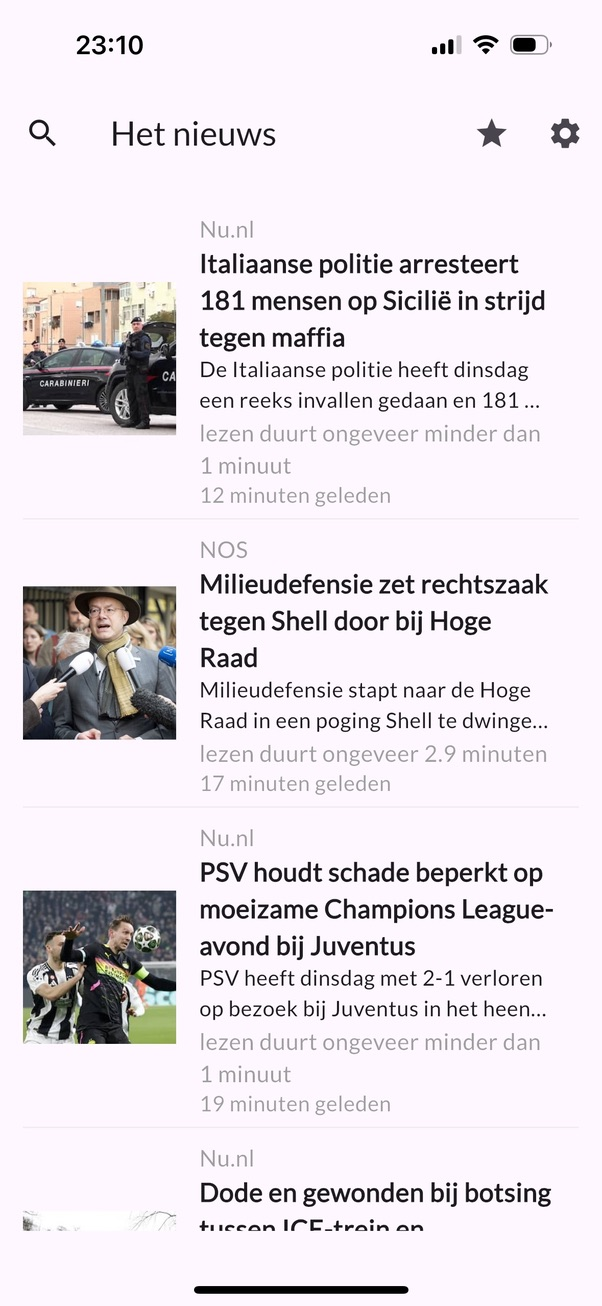 Een simpel uiterlijk zorgt voor een fijne ervaring. Geen afleidingen, geen advertenties, alleen het nieuws wat jij wilt zien.